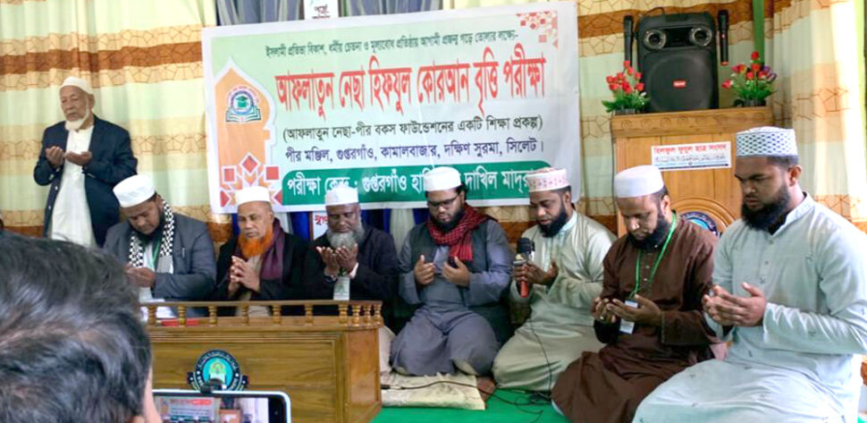 গতকাল ৬ডিসেম্বর ২০২৫ শনিবার সিলেটের দক্ষিণ সুরমা উপজেলার কামালবাজার ইউনিয়নের গুপ্তরগাঁও হাফিজিয়া দাখিল মাদ্রাসায় ‘আফলাতুন নেছা-পীর বকস ফাউন্ডেশনের‘ শিক্ষা প্রকল্পের আওতাধীন আফলাতুন নেছা হিফযুল কোরআন বৃত্তি পরীক্ষা সম্পন্ন হয়েছে। সকাল ৯টা থেকে মধ্যাহ্ন ৩টা পর্যন্ত অনুষ্টিত এ পরীক্ষায় অংশগ্রহণ করেন কামালবাজার ইউনিয়নের সবকয়টি হাফিজিয়া মাদ্রাসার শিক্ষার্থীরা। পরীক্ষা শুরুর আগে বৃত্তি পরীক্ষা পরিচালনা কমিটির সভাপতি সহকারী অধ্যাপক কবি শামছুল হক বিন আফতাবের সভাপতিতে ও পরীক্ষা নিয়ন্ত্রক হাফিজ কারী এম. এ. রহিমের পরিচালনায় সংক্ষিপ্ত বক্তব্য রাখেন বৃত্তিপরীক্ষা পরিচালনা পরিষদের প্রধান উপদেষ্ঠা যুক্তরাজ্য প্রবাসী সোনাফর আলী, আফলাতুন নেছা-পীর বকস ফাউন্ডেশনের চেয়ারম্যান ও স্থানীয় ইউপি সদস্য ছোয়াব আলী, প্রধান পরীক্ষক মাওলানা আব্দুল মতিন, পরীক্ষক জুবায়ের আহমদ, বৃত্তি পরিচালনা পরিষদের সহসভাপতি আজাদ মিয়া প্রমুখ। মোনাজাত পরিচালনা করেন গুপ্তরগাও কেন্দ্রীয় জামে মসজিদের খতিব হাফিজ মাওলানা আলী আহমদ। ইসলামী শিক্ষা প্রসারে, ধর্মীয় চেতনা, নৈতিকতা ও ইসলামী মূল্যবোধে নবপ্রজন্ম গড়ে তুলতে এবং প্রতিভা বিকাশে শিক্ষার্থীদের যোগ্যতা যাচাই ও উৎসাহ বাড়ানো লক্ষ্যে আফলাতুন নেছা বৃত্তি পরীক্ষার আয়োজন। উল্লেখ্য যে আফলাতুন নেছা-পীর বকস ফাউন্ডেশন দীর্ঘদিন যাবত এলাকায় সমাজ উন্নয়ন – শিক্ষা বিস্তার ও আর্থমানবতার কল্যাণে কাজ করে যাচ্ছে।