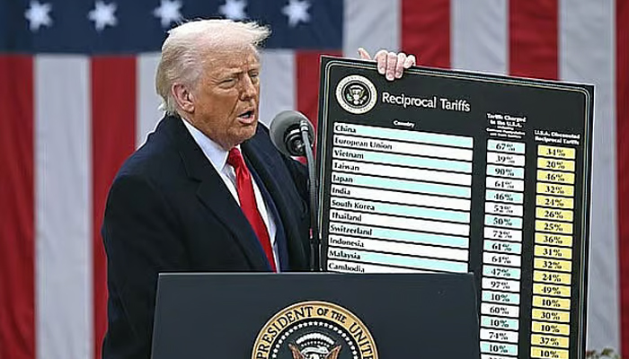 মার্কিন প্রেসিডেন্ট ডোনাল্ড ট্রাম্প গত ২ এপ্রিল বিভিন্ন দেশের পণ্যের ওপর নতুন করে শুল্ক আরোপের ঘোষণা দিয়েছিলেন। ছবি : এএফপি বিস্তারিত...