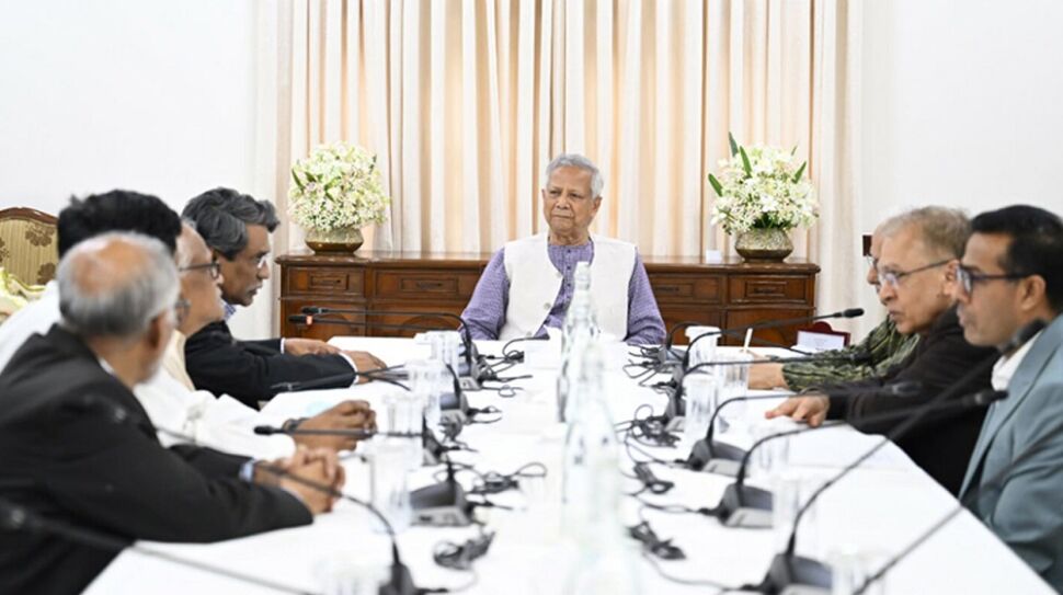 আজ সোমবার বিকেলে রাষ্ট্রীয় অতিথিভবন যমুনায় প্রধান উপদেষ্টা প্রফেসর মুহাম্মদ ইউনূসের সভাপতিত্বে কমিশনের সমাপনী বৈঠক অনুষ্ঠিত হয়েছে । ছবি : বিস্তারিত...