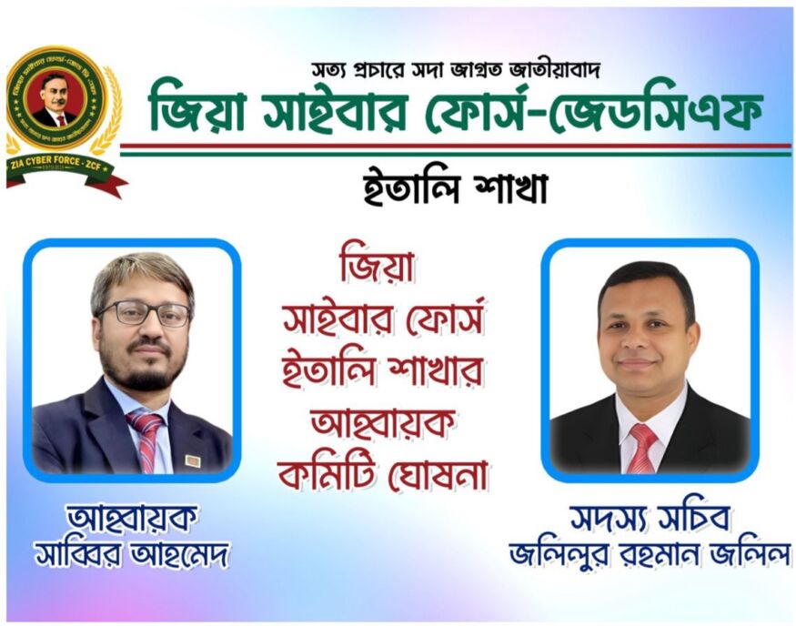 ইতালিতে জিয়া সাইবার ফোর্সের ৩৭ সদস্য বিশিষ্ট আহ্বায়ক কমিটি ঘোষণা: আহবায়ক সাব্বির, সদস্য সচিব জলিলুর জিয়া সাইবার ফোর্স ইতালি শাখার বিস্তারিত...